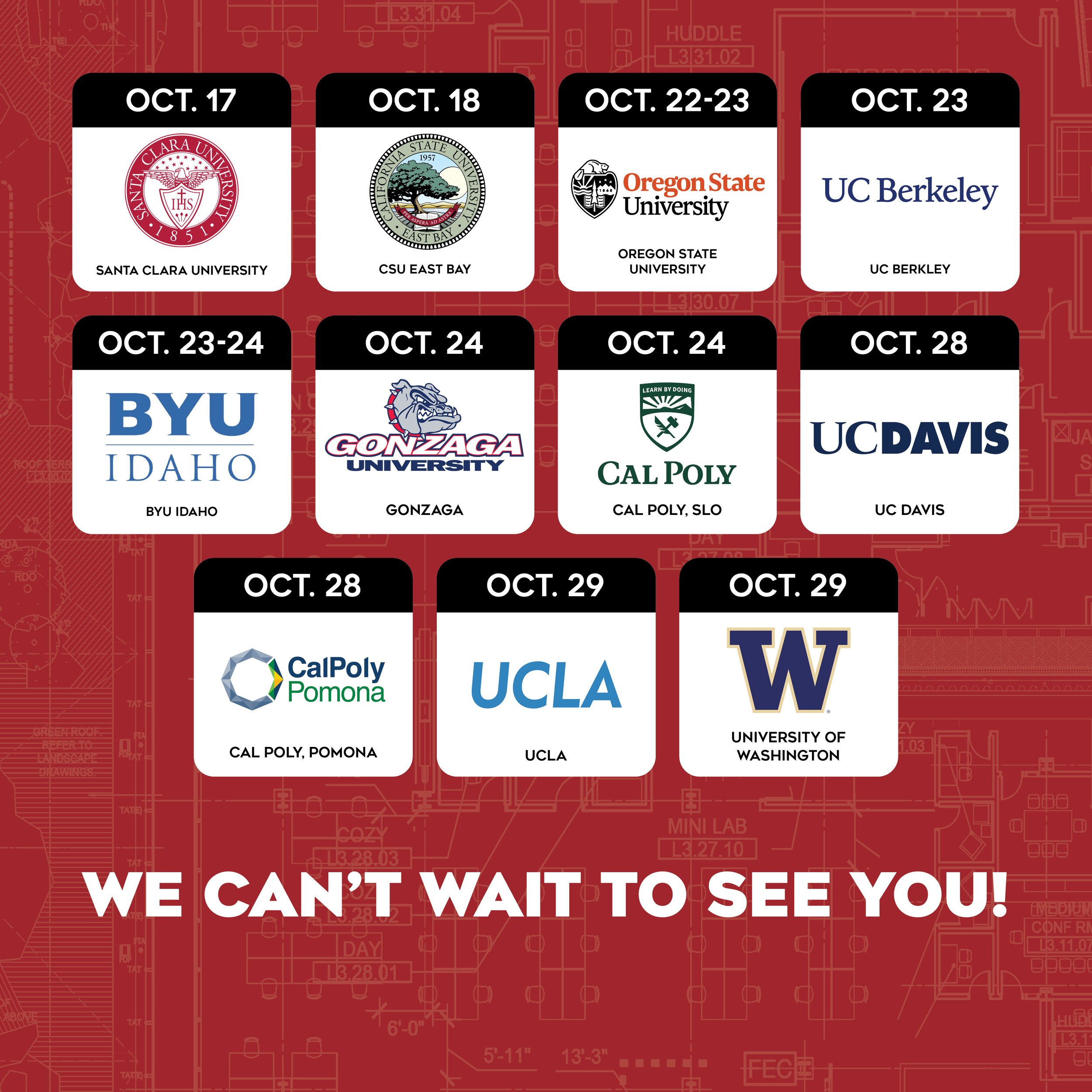 With multiple career fairs happening back to back in the fall, our HR team asked for graphics that showed a snapshot of our recruiting schedule and templates that they could edit details themselves.