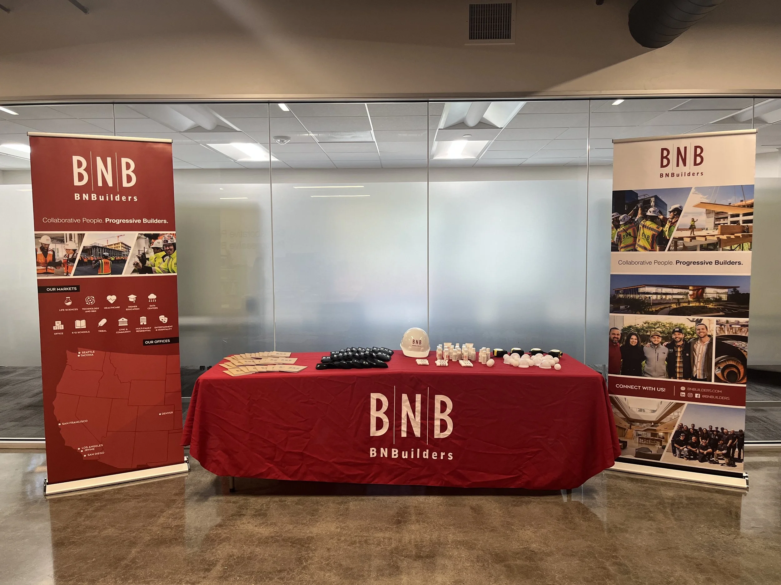 BNBuilders previously had table top displays for recruiting fairs that were difficult to setup and simple in design, only including the logo, tagline, and a generic construction photo. Team members at career fairs were frequently asked what BNBuilders did and what type of projects we worked on.